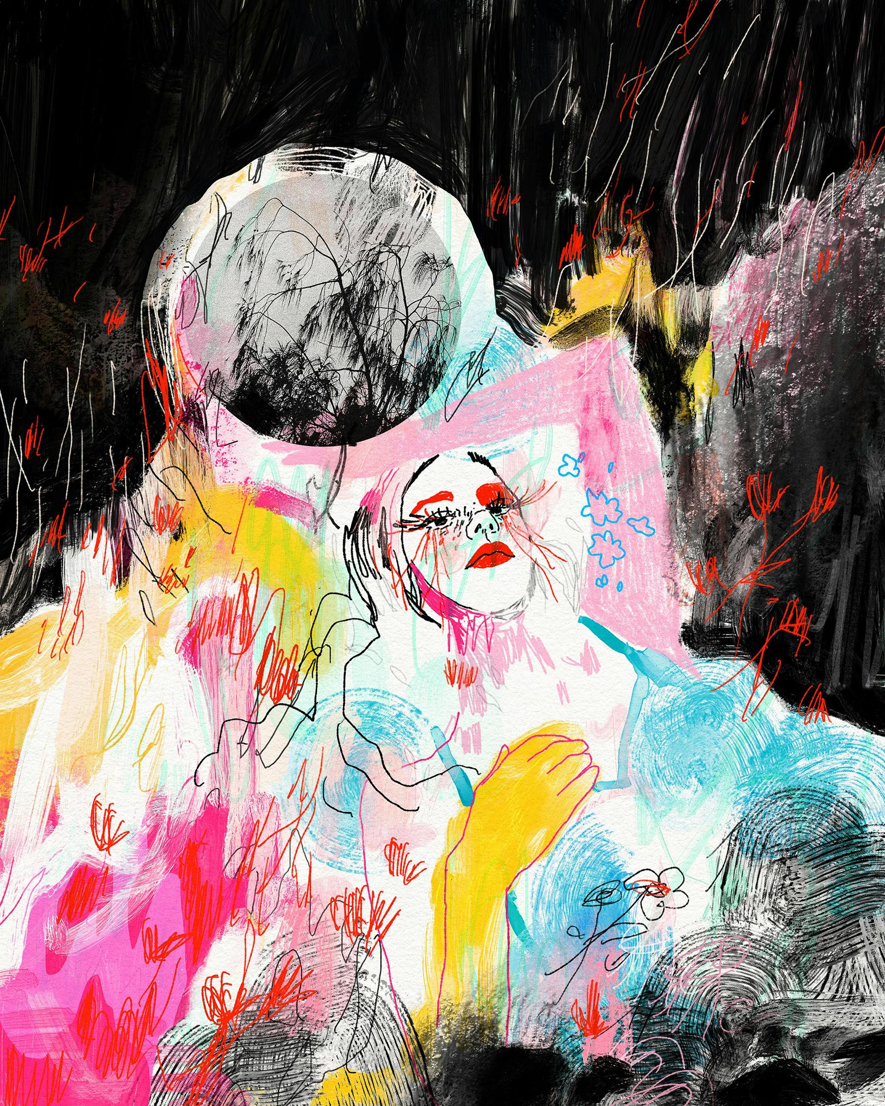tiffatronn is an independent artist currently based in Australia. Her digitally hand-drawn work explores themes of identity, emotion, inner worlds, and imagined realities. Through abstract mark-making and expressive lines reminiscent of traditional media, she crafts a sense of movement and texture that captivates viewers, often revealing tiny hidden details upon closer inspection.