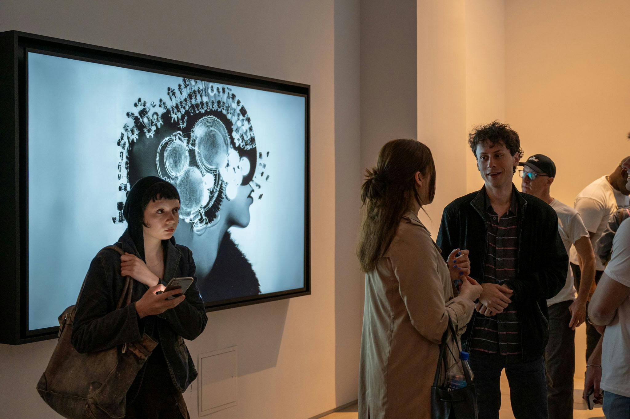 The gallery is an opportunity to show how digital art can be elevated in a physical space—presented on FRMD’s wood-mounted frames with anti-glare surfaces, designed for ideal viewing. It also underscored the importance of bringing people together to experience work that’s long lived on desktops and phones—inviting a slower, more intentional experience.