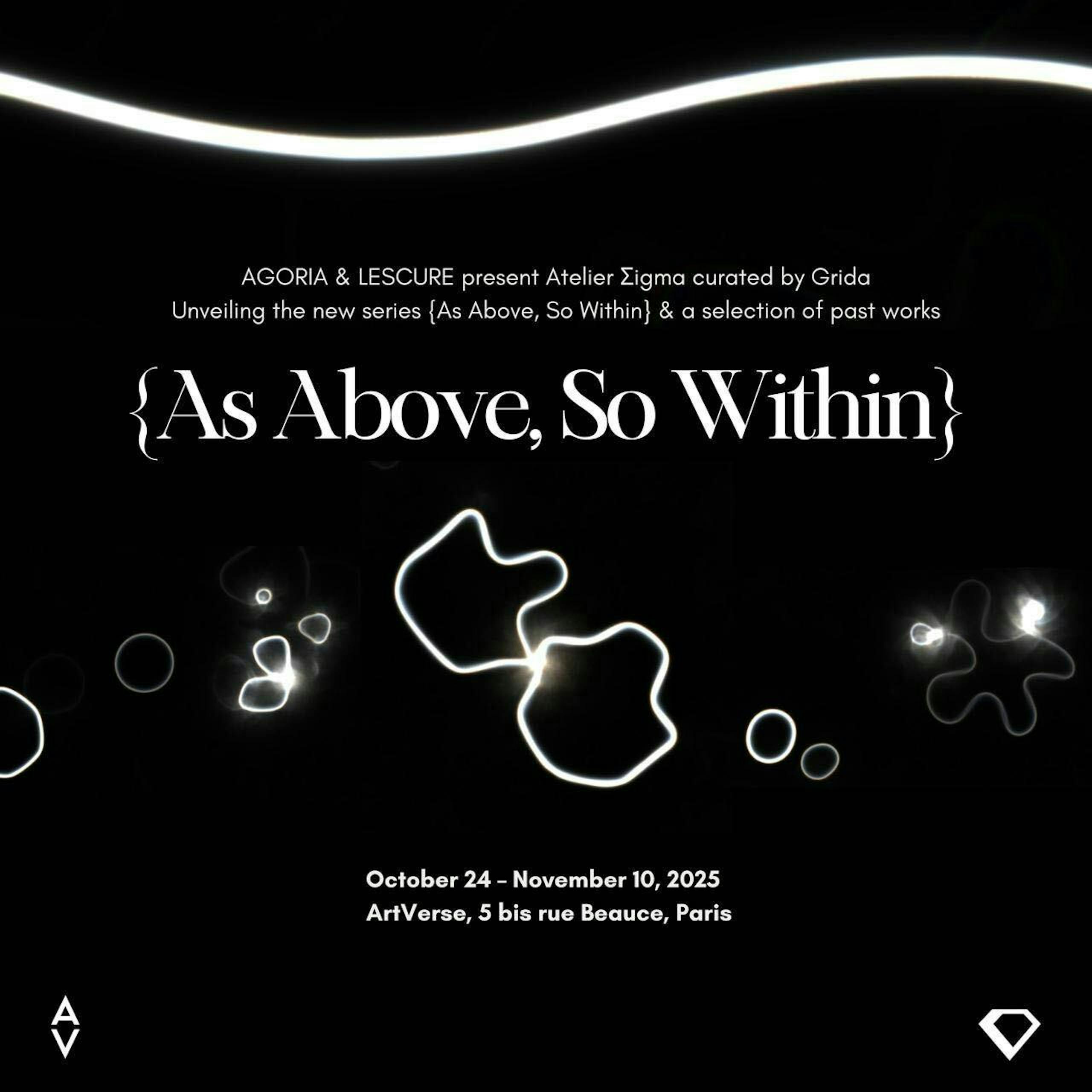 This collection marks the debut of Atelier Σigma, a collaboration between French artist and musician Agoria (Sébastien Devaud) and visual artist Johan Lescure. Together, they traverse the borders between music and visual art, between code and breath, between human perception and technological language. Through their new series {As Above, So Within}, they explore the resonances that connect the cosmic and the cellular, the simulated and the living.